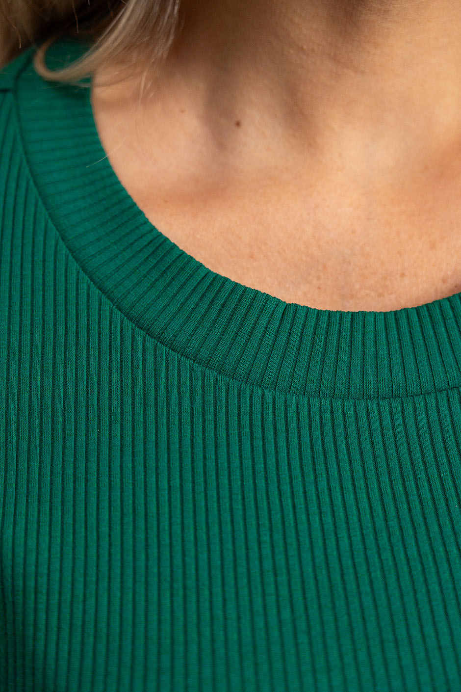 Ткань: трикотажное полотно с выработкой в резинку. Лонгслив полуприлегающего покроя, с небольшим вырезом. Рукав длинный. Длина ок.64см