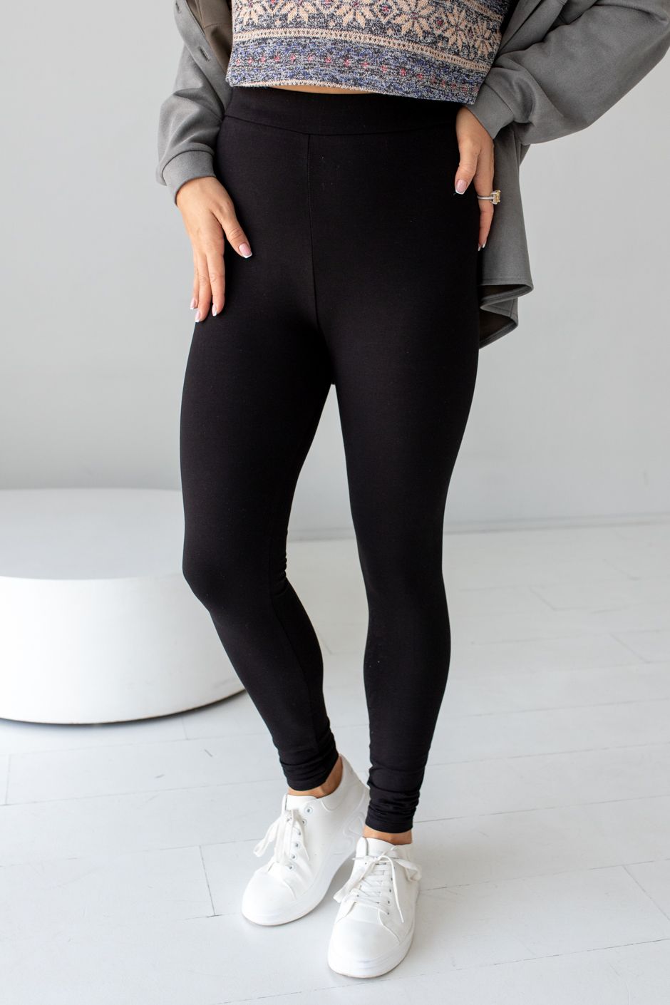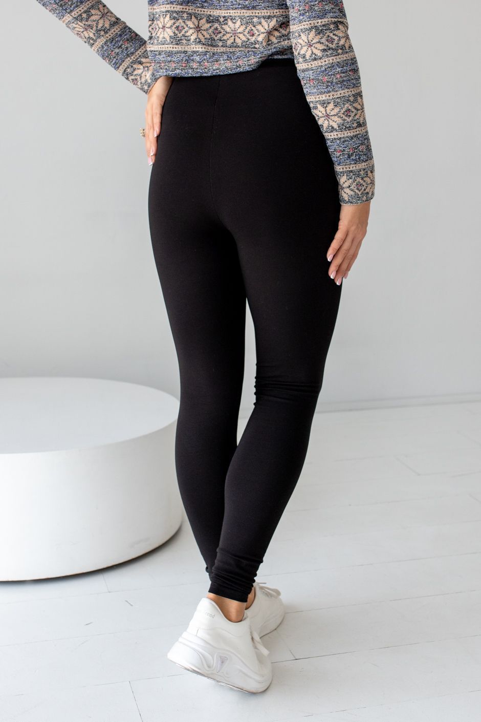 Ткань: кулирная гладь.Лосины с высокой посадкой, полуприлегающего кроя, Длина по внутреннему шву ок.75см.